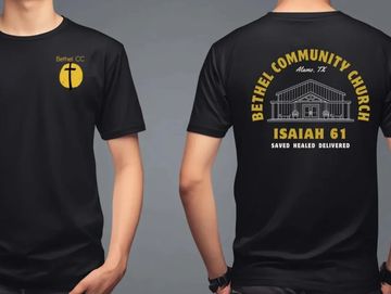 Mens Ministry t-shirt with Bethel CC in the front corner.